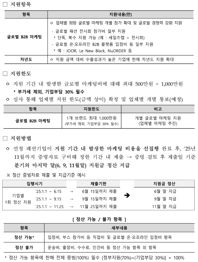 ☞ 협회 주관 '2025 K-섬유패션스트림 컨소시엄' 사업과 중복 수혜 불가(단 신청은 가능)